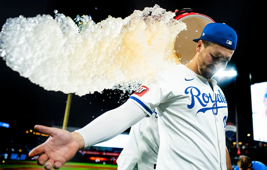 “Hyuston Astros” futbolchilari “Kanzas Siti” stadionida g‘alabani nishonlashmoqda