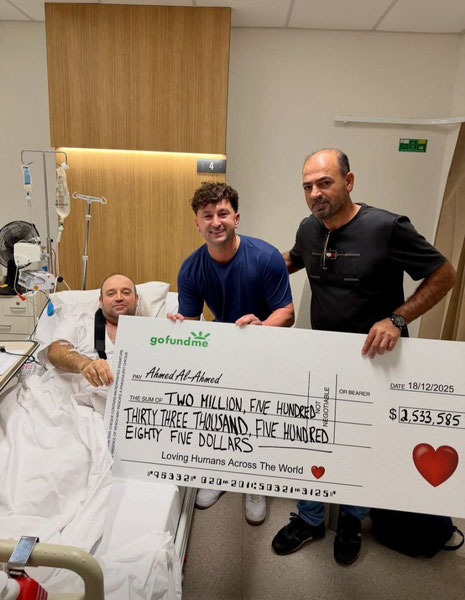 14-dekabr kuni Sidneyning Bondi plyajida sodir bo‘lgan terrorchilik hujumini zararsizlantirgan suriyalik qochqin Ahmad al-Ahmad xalqaro miqyosda e’tirof etildi va uning jasorati uchun butun dunyo aholisi tomonidan 2,5 million dollardan ortiq mablag‘ yig‘ildi. Bu xayriya mablag‘lari taniqli bloger Zachery Dereniowski tomonidan tashkil etilgan kampaniya orqali to‘plangan.
