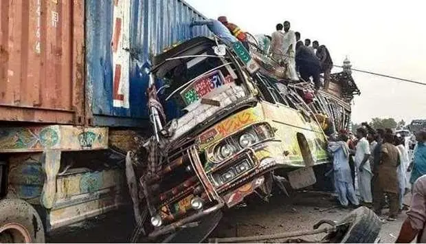 Покистоннинг Панжоб вилоятидаги трассада юк машинаси ва йўловчи автобус тўқнашуви содир бўлди.