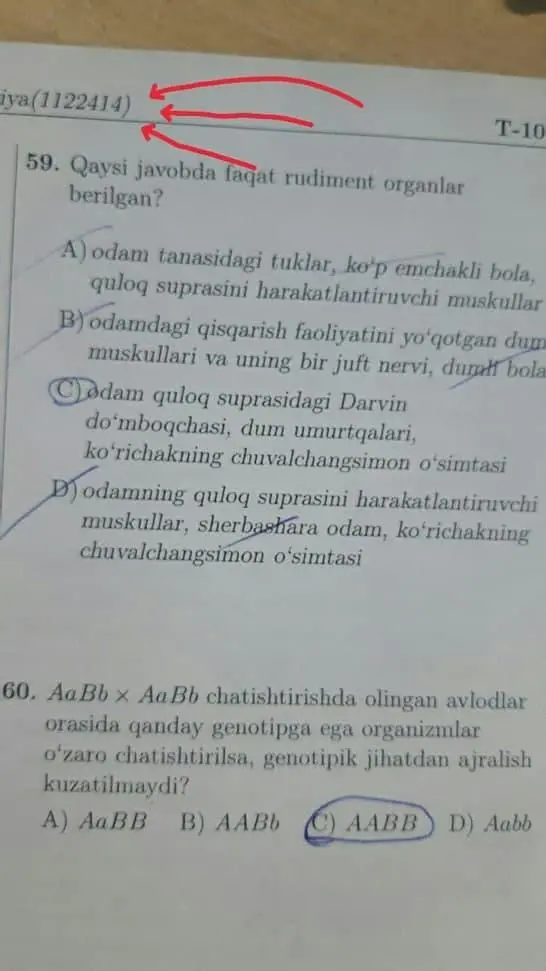 Биология фанидан тест топшириқлари акс етган 1122414 рақамли тест топшириқлари китоби бугун Наманган вилоятида ўтказилган тест синовларига тааллуқли бўлиб, мазкур абитурийент тест синови вақтида телефондан фойдаланаётгани аниқланиб, далолатнома асосида тест синовларидан четлаштирилган.