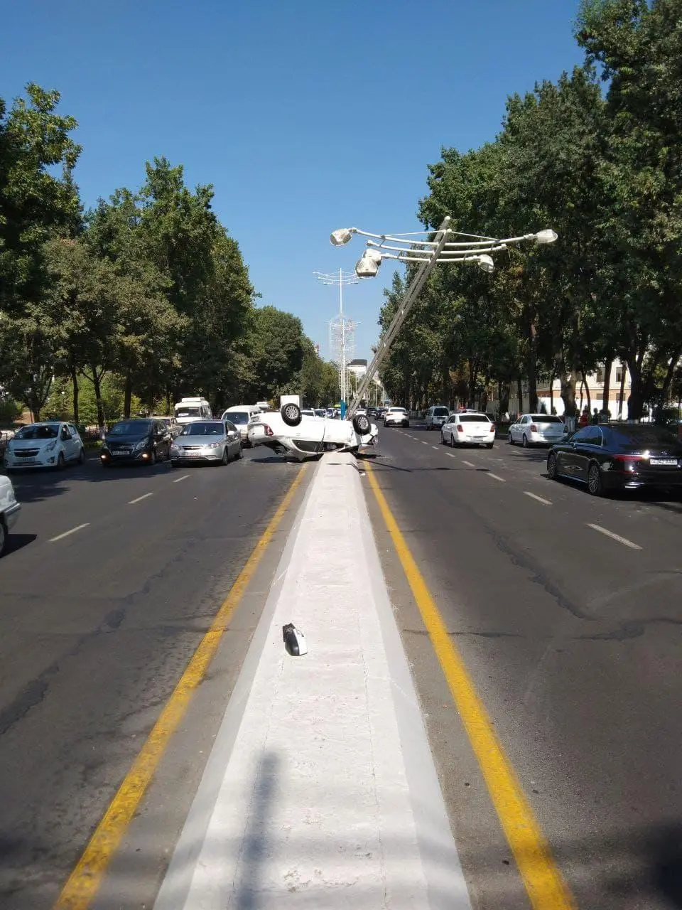 Маълум бўлишича, ҳодиса бугун соат 15:00да Тошкент шаҳар М.Улуғбек тумани, Мустақиллик кўчаси, 71 уй қаршисида содир бўлган. Ҳайдовчи Д. Каримов “Cobalt” русумли автоуловни бошқариб кетаётиб, Россия Федерацияси фуқароси бўлган А.Тюни бошқарувидаги “Spark” русумли автоулов билан тўқнашиб кетган, натижада “Cobalt” автоулови ағдарилиб кетган.