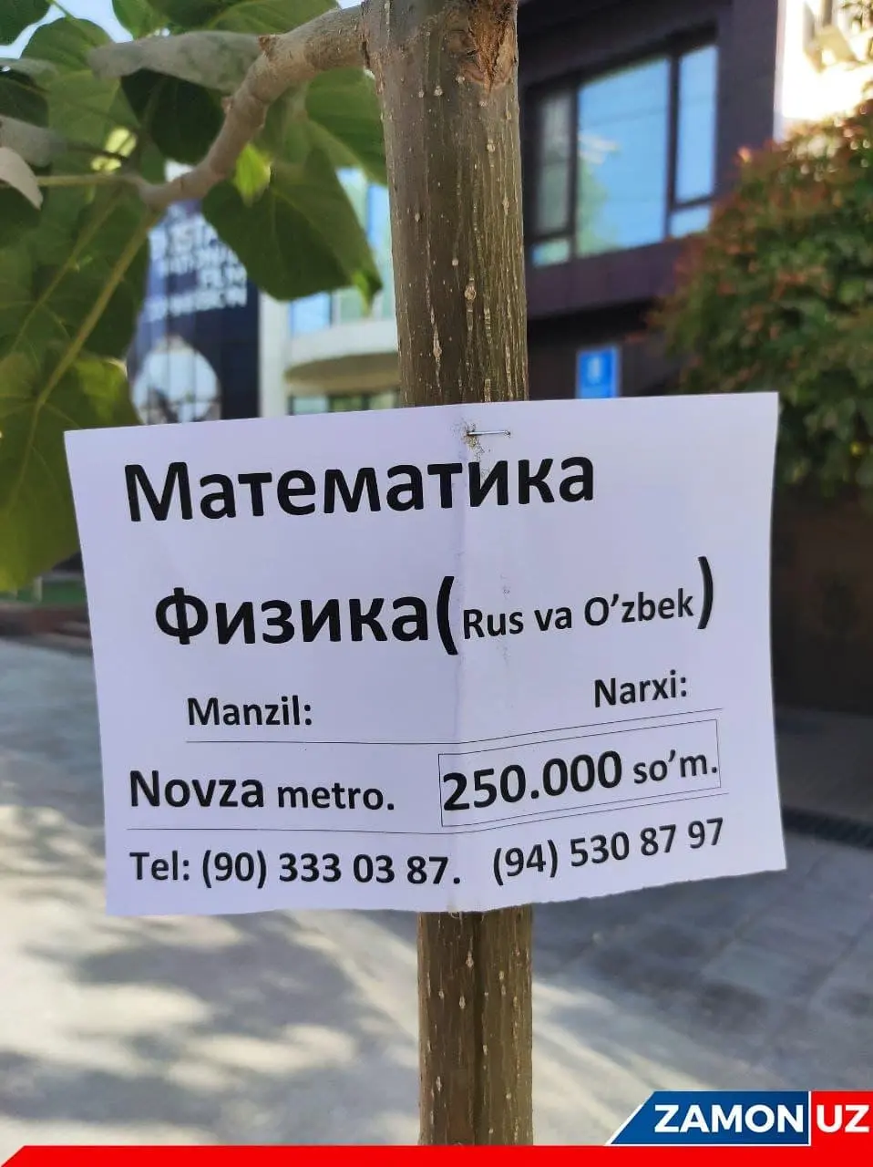 Яқинда йўл четида энди кўкка бўй чўзаётган павлония дарахтига илинган оппоқ қоғозга кўзим тушди. Унга нима ёзилган экан, деб қизиқдим. Хаёлимга дастлаб дарахт ҳақида маълумот ёзилган бўлса керак, деган фикр келди. Бироқ... Не кўз билан кўрайки, ёшгина ниҳол танасига пойтахтимиздаги машҳур ўқув марказларидан бирининг эълони ёпиштирилган экан. Бу ҳам етмаганидек, эълонни ёш дарахт танасига “степлер” ёрдамида қоқиб кетишибди. Эълонда ёзилган рақамга қўнғироқ қилдим.