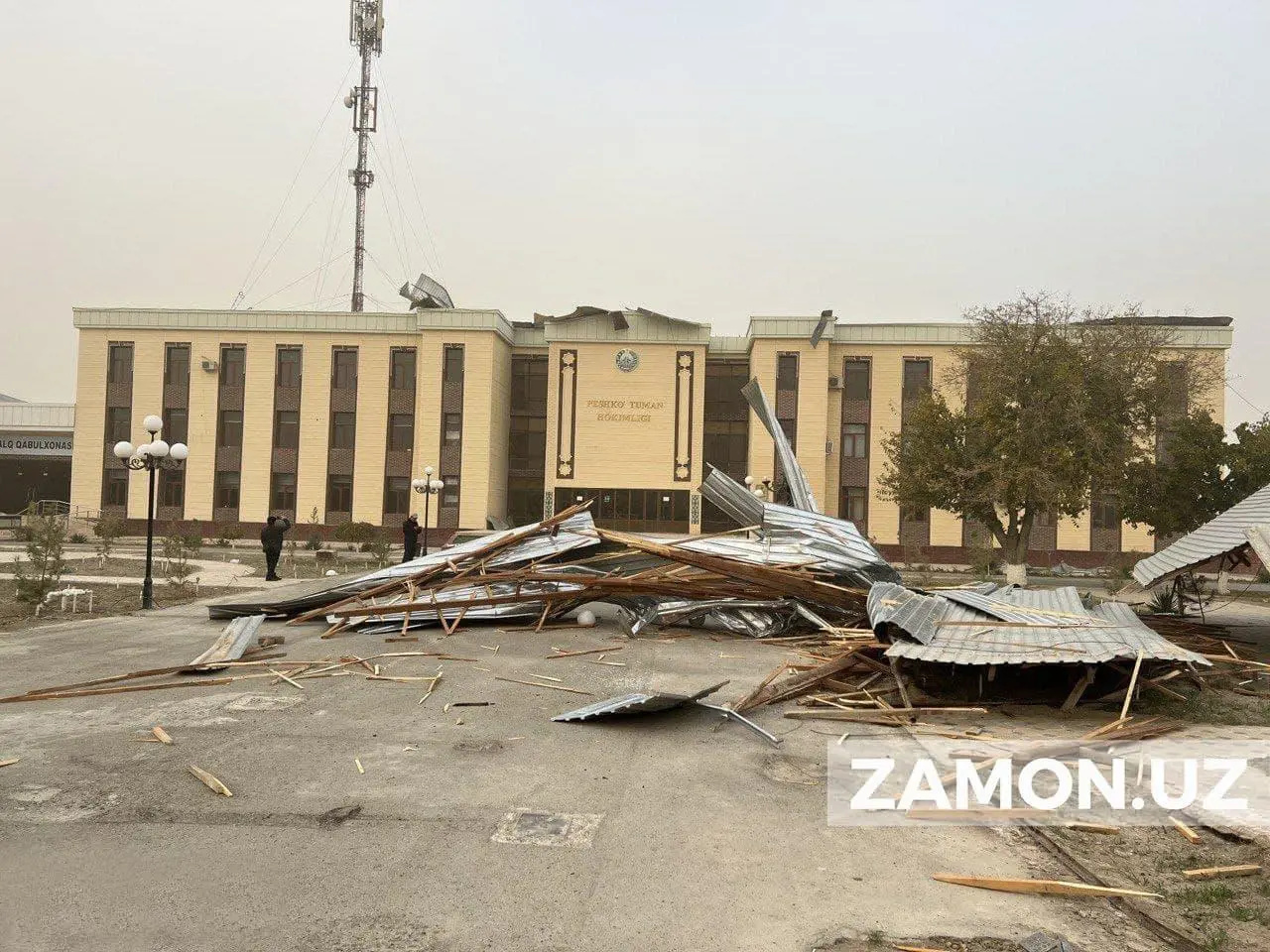 Кеча тахминан соат 17:00 лар атрофида ҳокимлик биносига ўз муаммоларини ҳал қилиш учун келаётган одамларнинг кўз ўнгида кучли қумбўрон содир бўлди. Оқибатда, бинонинг том қисмида ваҳимали кўчиш юзага келиб, учиб кетган.
