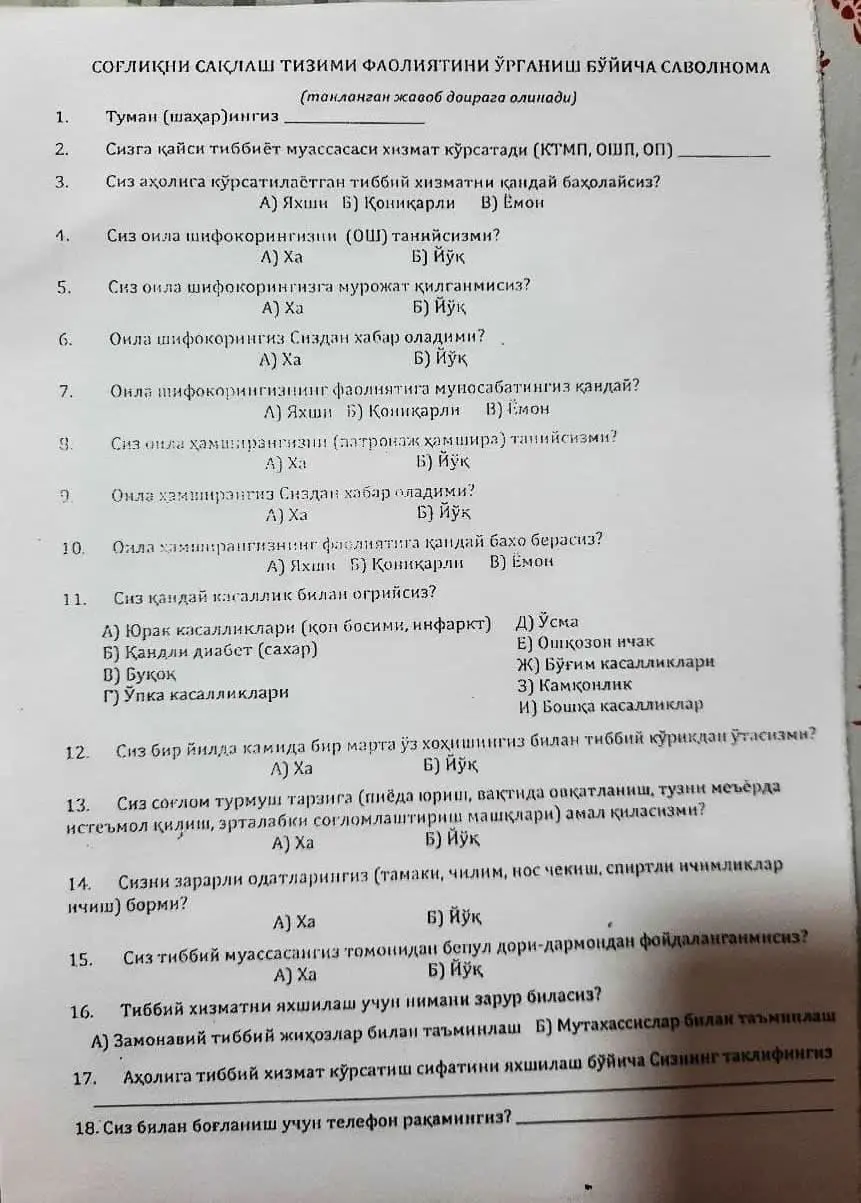 “Магистрлар Тиббиёт институти маъмурияти томонидан дам олиш кунларида аҳоли ўртасида сўровнома ўтказиш учун мажбурланмоқда. Мана оқибатда, гулдек нобуд бўлди”, — дейди Тиббиёт институти ходими.