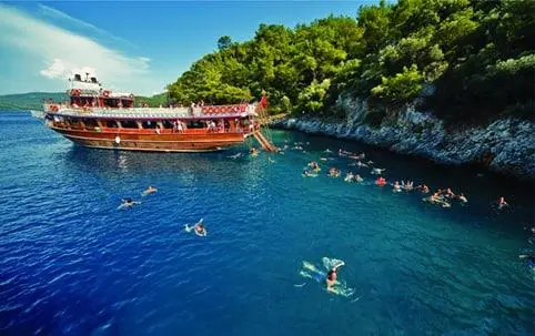 Кема саёҳати/мовий тур: Кемада сайр қилиб, мовий осмон, яшил табилат ва феруза денгиз сувларини томоша қилишни севувчилар учун Муғла мўъжизанинг ўзгинасидир.