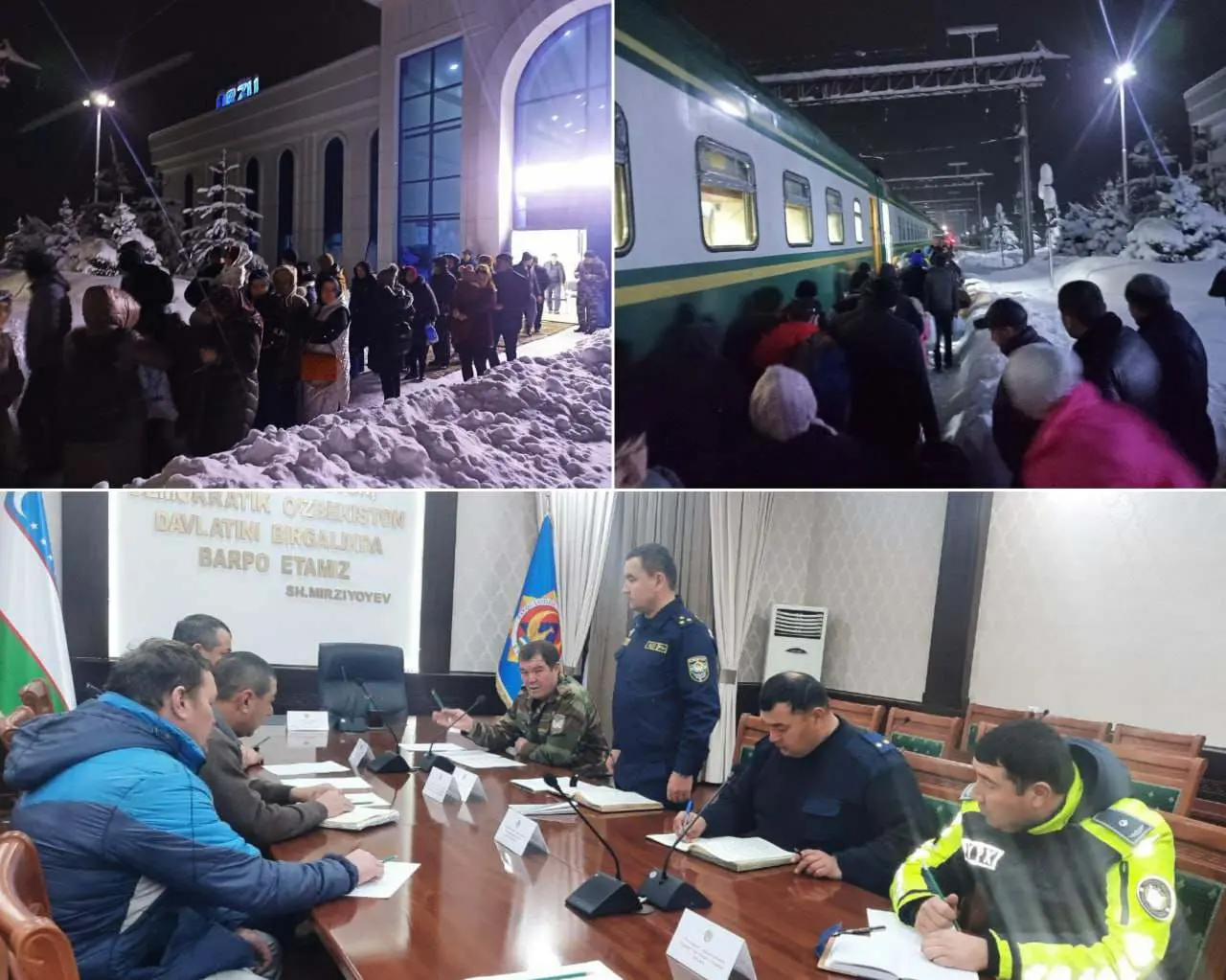 ФВВ хабарига кўра, «ANGREN-LAND» ошхонасида ФВВ раҳбарлигида дахлдор корхона ва ташкилотларнинг масъул ва мутасаддиларидан иборат фуқароларни қабул қилиш – эвакуация штаби тузилиб, «Ўзбекистон темир йўллари» АЖ ҳамкорлигида йўлда қолиб кетган йўловчиларга махсус рейс орқали поезд қатнови йўлга қўйилди ва исиниш масканлари ташкил этилди.