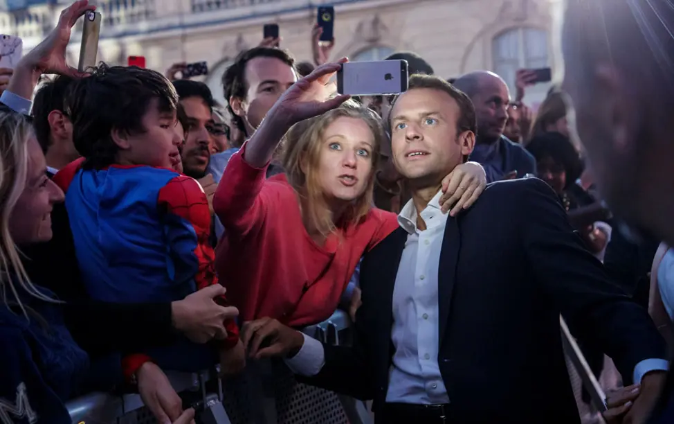 Франция президенти Эммануэль Макрон ҳар доим позитив кайфиятда селфига тушади.
