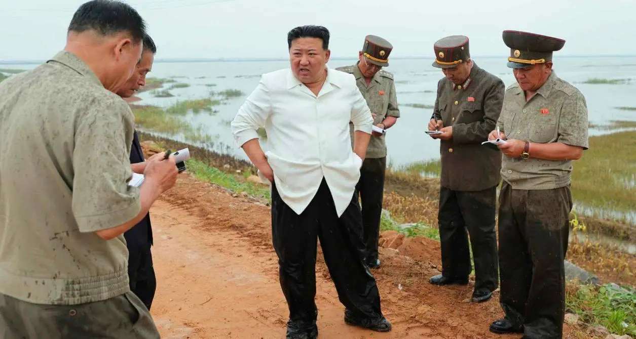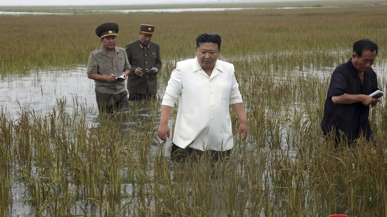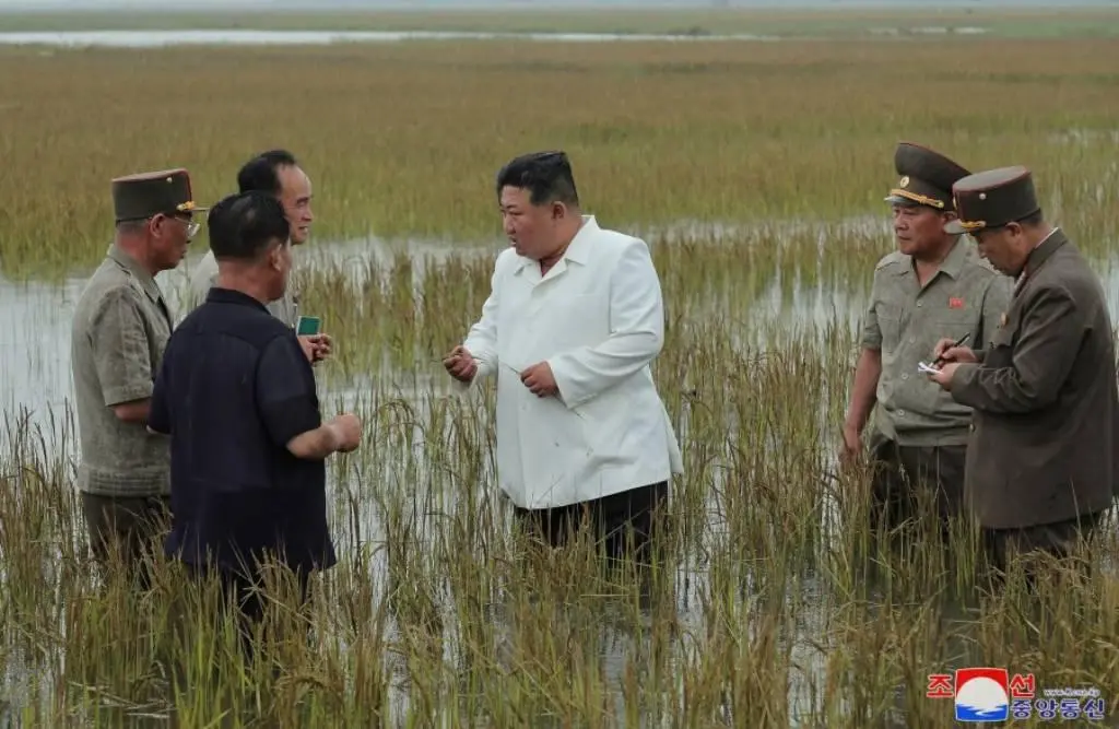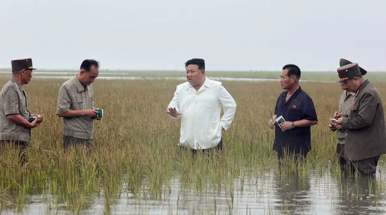 Шимолий Корея етакчиси Ким Чен Ин Ончхондаги шоли экилган далалардан бирига бориб, у ердаги тиклаш ишлари қандай олиб борилаётганини текширди. Бу ҳудудда сув тошқинларидан кейин экин далалари сув остида қолган.
