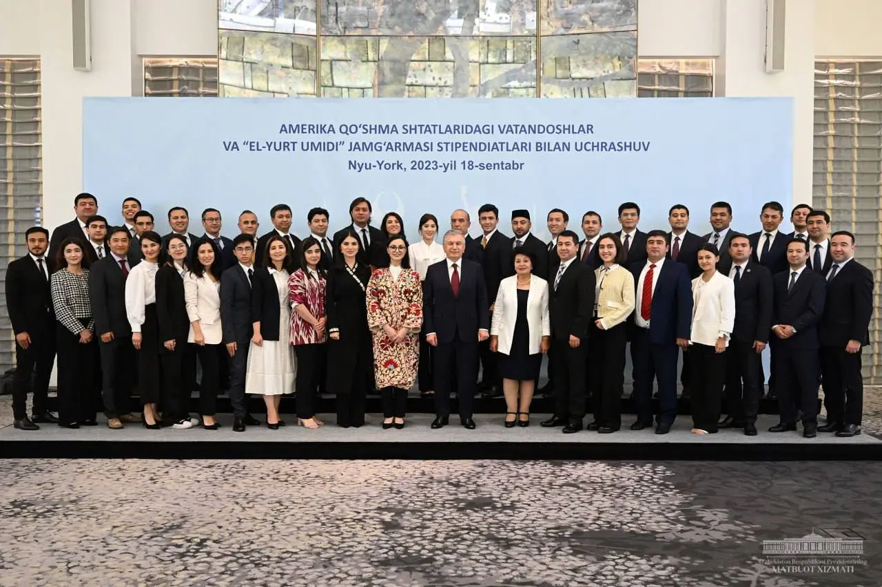 АҚШга амалий ташриф доирасида Ўзбекистон Республикаси Президенти Шавкат Мирзиёев 18 сентябрь куни Қўшма Штатларда яшаётган ва ишлаётган бир гуруҳ ватандошларимиз ҳамда ушбу мамлакатнинг етакчи олий таълим даргоҳларида таҳсил олаётган “Эл-юрт умиди” жамғармаси стипендиатлари билан учрашди.