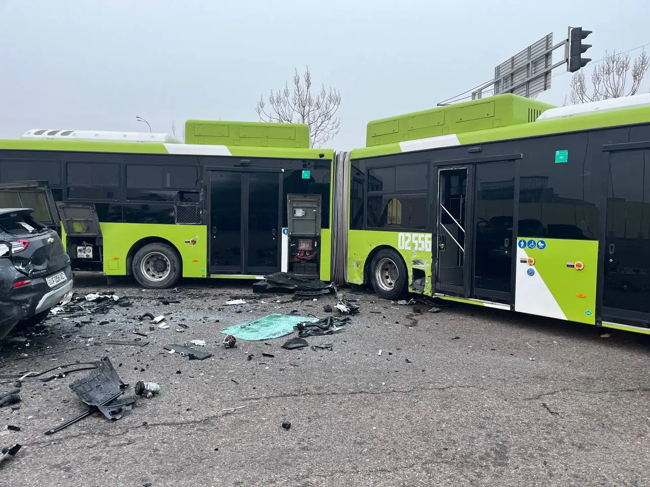 Маълум қилинишича, автобус Янги Ўзбекистон — Жасорат кўчалари кесишмасида қарама-қарши томондан келаётган "Treker-2" автомобилига йўл бермагани оқибатида тўқнашув юз берган.