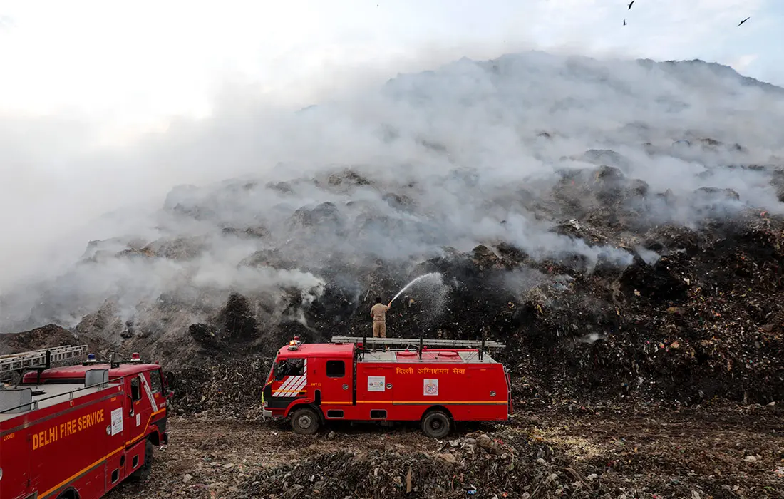 Янги Деҳлидаги чиқинди билан тўлдирилган каналда эчкилар овқат қидирмоқда