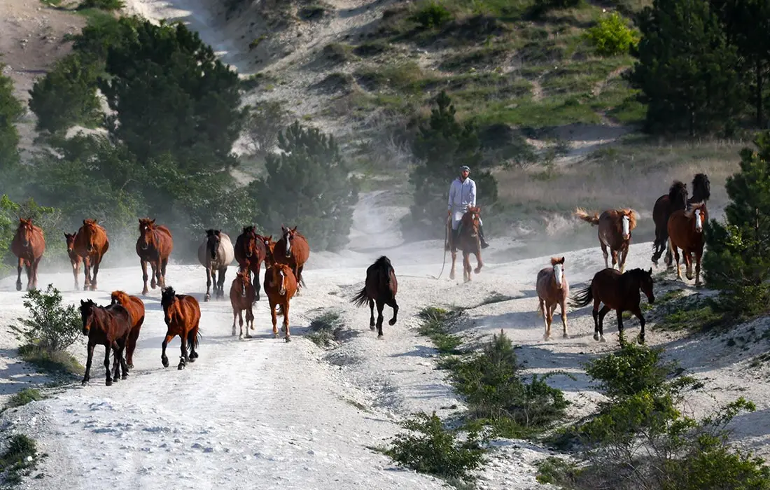 Қримдаги Оқ тош яқинида отларни ҳайдаш