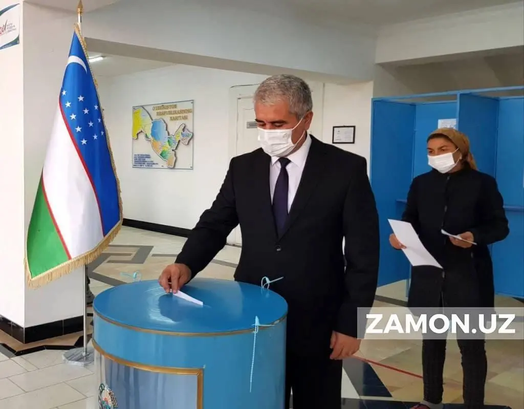 Бухоро вилояти ҳокими Ботир Зарипов Бухоро шаҳридаги 49-сайлов участкасида Сайлов кодексида белгиланган талаблар асосида ўзи муносиб деб топган номзодга овоз берди.