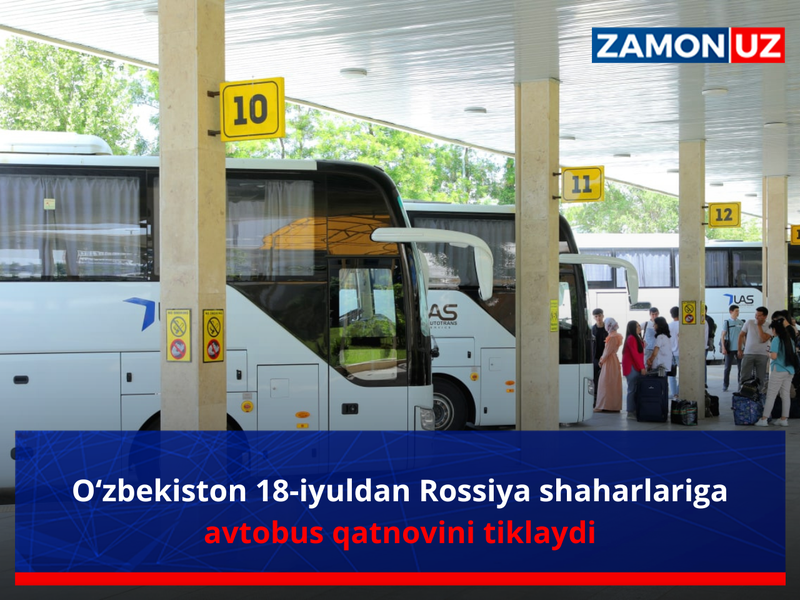 18 июлдан Россия Федерациясининг Москва, Қозон ва Санкт-Петербург шаҳарларига мунтазам автобус қатновлари қайта тикланади. Бу ҳақда Транспорт вазирлиги ахборот хизмати хабар бермоқда.