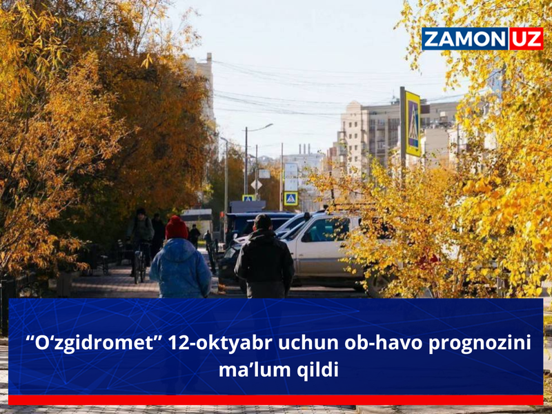 “Ўзгидромет” 12 октябрь куни соат 20:00 гача кузатиладиган об-ҳаво прогнозини эълон қилди.