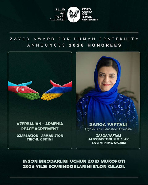 У 2026 йилги совриндорлардан Зарқа Яфталини алоҳида тилга олиб, унинг қизларнинг таълим олиш ҳуқуқини ҳимоя қилишдаги кўп йиллик фаолияти орқали инсонлар тақдири ва бутун ҳамжамиятлар келажати ўзгариши мумкинлигини таъкидлади.