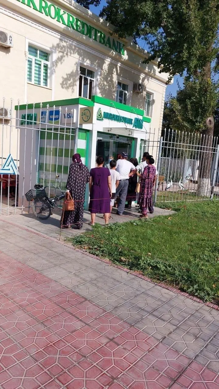 Бири қарғанган, яна бири сўкинган... Хуллас, навбат талашиш авжида. Бунинг сабаби, шаҳарда бошқа бирорта банкомат ишлаяпти.