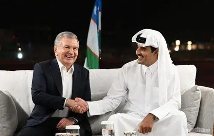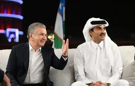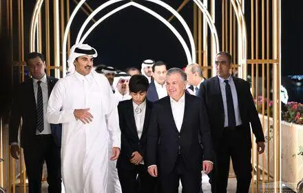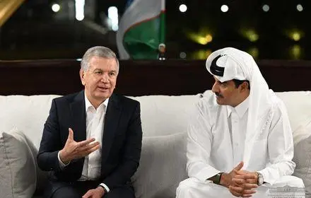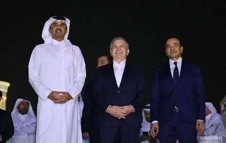 Қатар етакчиси давлат ташрифининг биринчи куни доирасидаги тадбирлар якунида Президент Шавкат Мирзиёев ва Амир Тамим бин Ҳамад Ол Соний Самарқанд Халқаро туризм марказидаги сув ҳавзасида сайр қилди.