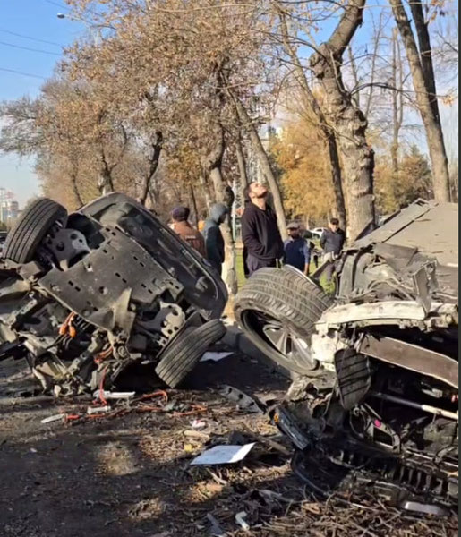 Ижтимоий тармоқларда татқалган кадрларга кўра машиналардан бири том маънода парчаланиб кетган, бошқа транспорт воситалари ҳам оғир шикастланган.