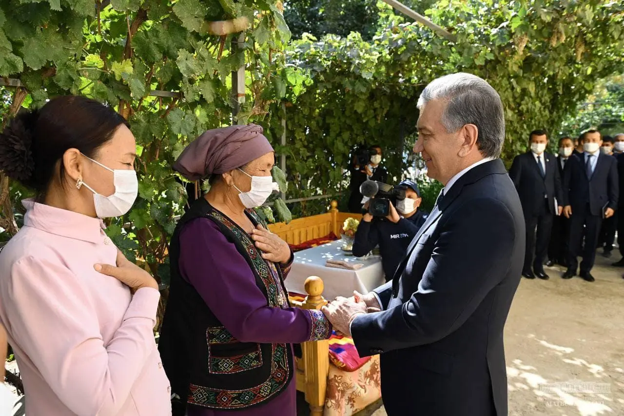 Prezident Shavkat Mirziyoyev Bo‘zatov tumaniga kelib, “Yoshlik” mahalla fuqarolar yig‘inida yashovchi Juginis Jumanazarov xonadonida mehmon bo‘ldi.