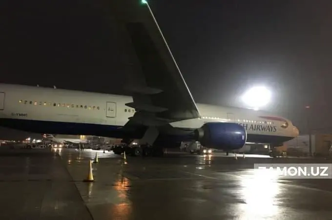 British Airways‘ning Islomoboddan Londonga uchayotgan Boeing 777-200ER samolyoti 22-sentabr kuni Islom Karimov nomidagi Toshkent xalqaro aeroportiga qo‘ngani to‘g‘risida xabar berilgandi.