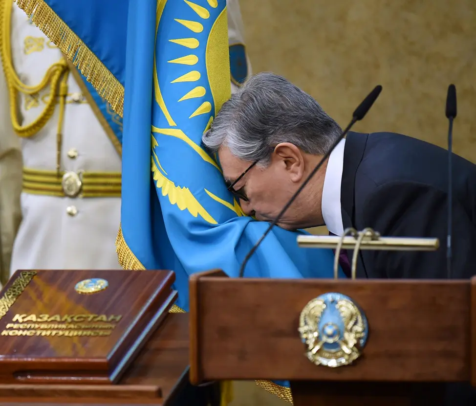 Qozog‘iston prezidenti Qasim-Jomart Toqayev Mustaqillik saroyida Qozog‘iston xalqiga qasamyod qabul qilish marosimida.