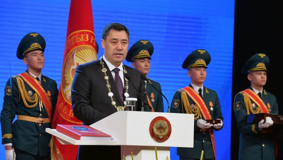 Qirg‘iziston prezidenti Sadir Japarovning inauguratsiya marosimi 2021 yilda bo‘lgan. Marosimda u xalq manfaati yo‘lida mehnat qilishga vaʼda berib, qasamyod qilgan. Prezidentga Markaziy saylov komissiyasi davlat ramzlari — ko‘krak nishoni va prezident shtandelini topshirgan.