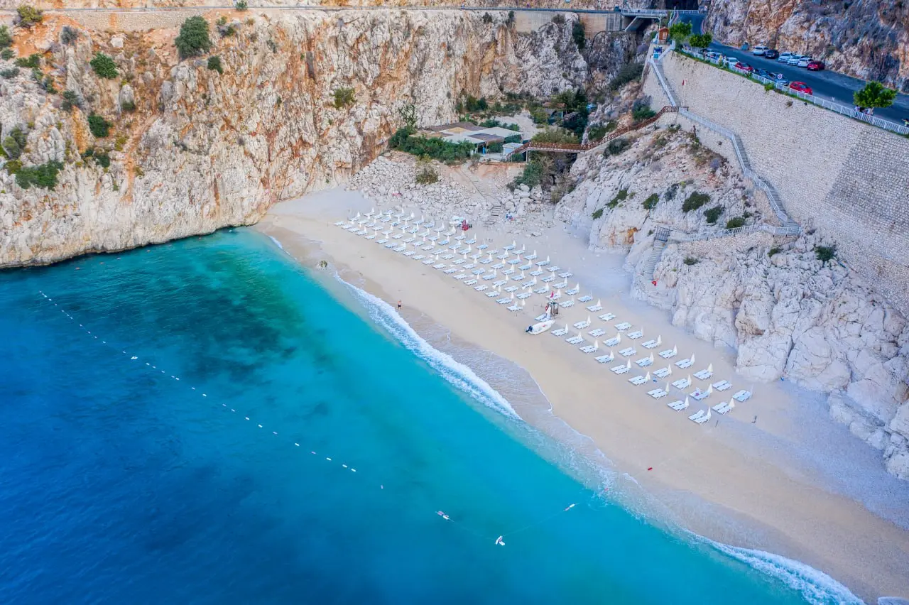 Turk Rivierasining qoq markazida joylashgan Antaliya o'zining Aspendosdan Miragacha, Sidedan Pergegacha bo'lgan ko'plab tarixiy joylari, uzun qirg'oq chizig'i, feruza suvlari, sokin ko'rfazlari va har xil sport tadbirlari bilan yuqori baholangan dam olish maskanlaridan biridir. Go'zal sohillari bilan tanilgan va 231 ta Moviy bayroq sertifikati bor plyajlarga ega bo'lgan Antaliyada, deyarli har bir yo'l bir sohilga olib chiqadi. Ba'zi plyajlar kilometrlarcha uzunlikda bo'lsa, boshqalari tog'lar va ko'rfazlarda o'rin olgan yashirin sohillardir. Masalan, Kaputash... Kash-Kalkan yo'lidagi Kaputash, oq qumli sohili va moviy dengizi bilan diqqatga sazovordir. O'zining ajib sehri bilan bu kichik sohil dunyodagi eng go'zal 50 sohillardan biri deb topildi. Uzunligi 14 km bo'lgan Turkiyaning ikkinchi eng uzun sohili - Patara ham Antaliyada joylashgan. U dengiz toshbaqalarining ko'payish joylaridan biri sanaladi.