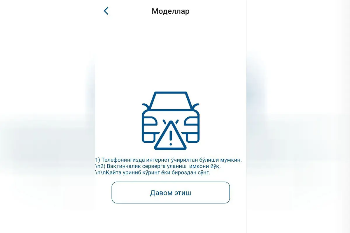 UzAutoMotors rasmiy sayti va mobil ilovasida uzilishlar kuzatilmoqda