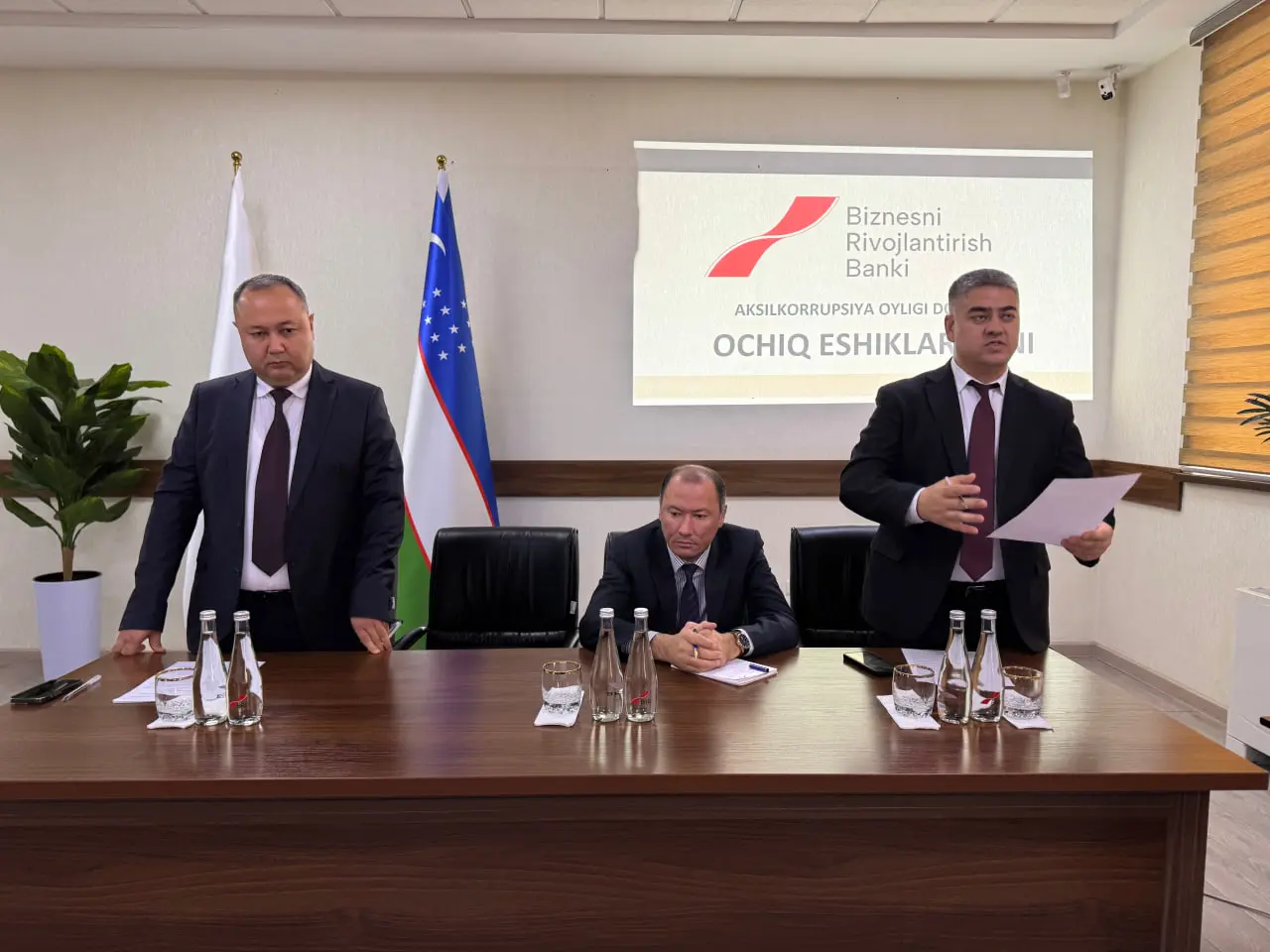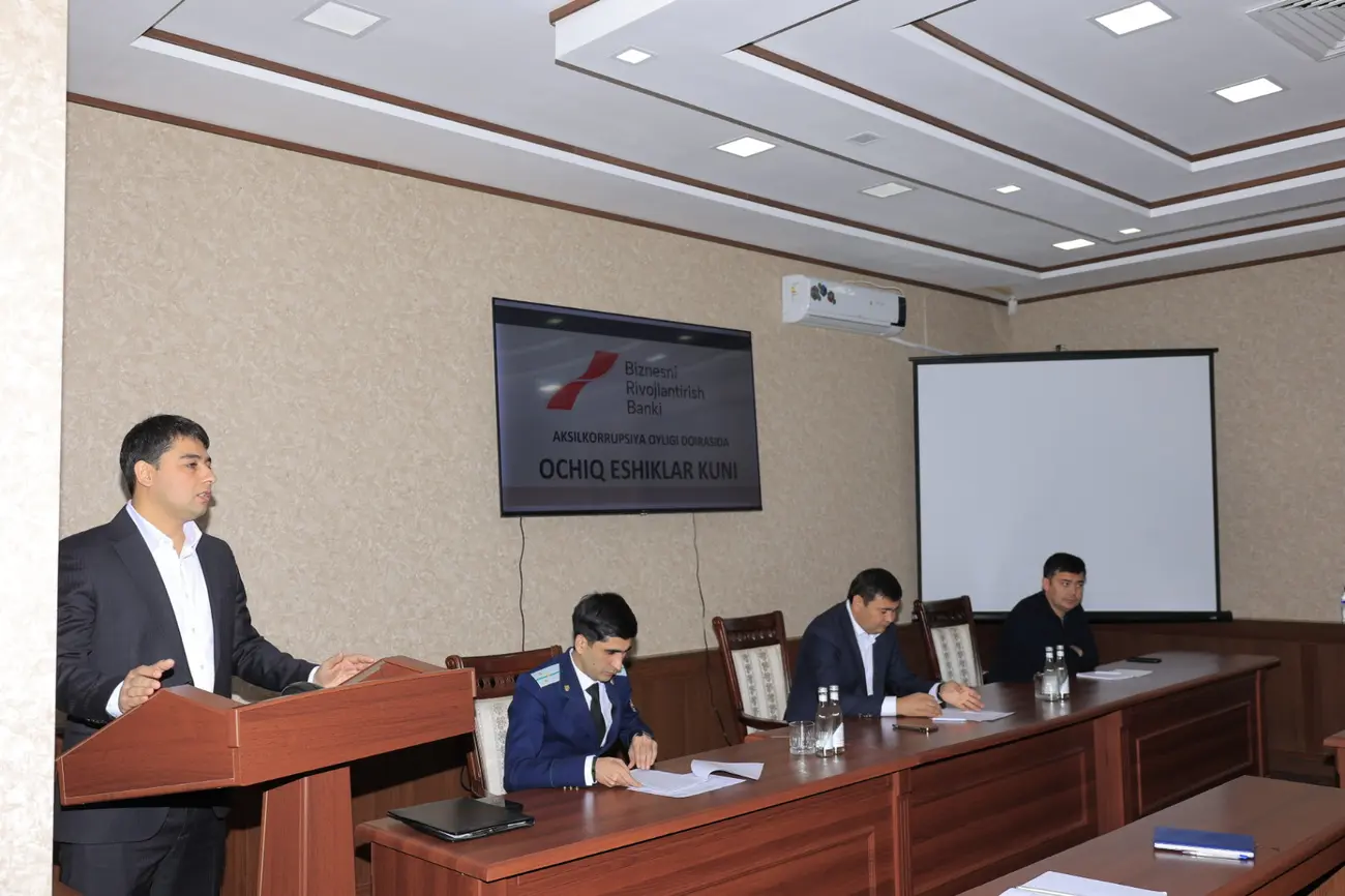 "Ochiq eshiklar kuni" tadbirlarida “Biznesni rivojlantirish banki”ning korrupsiyaga qarshi kurashish menejment tizimi tashqi auditdan o‘tkazilgani va ISO 37001:2016 xalqaro standartiga muvofiq deb topilgani maʼlum qilindi.