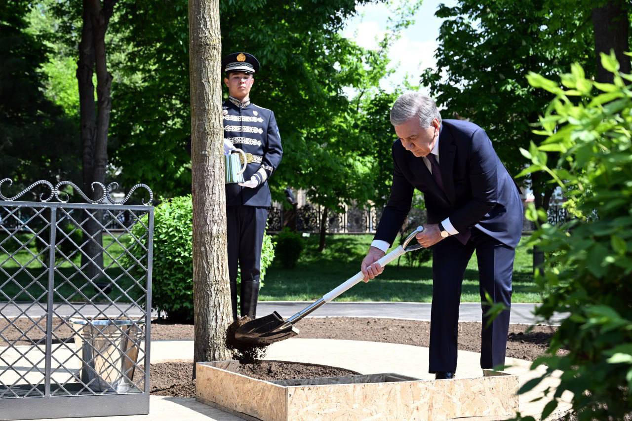 Tadbir yakunida Prezident Shavkat Mirziyoyev xiyobonda ko‘chat ekdi.